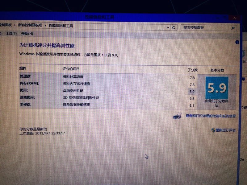 = =最低分5.9是集成显卡的跑分(话说集显都可以跑5.9啊。。好高兴啊。。),这个无视吧。。独立显卡居然才6.8分,太恶心了。 不是说这块gt650不是号称无阉割的开普勒架构么。怎么才6.8,我还以为会7.2以上。