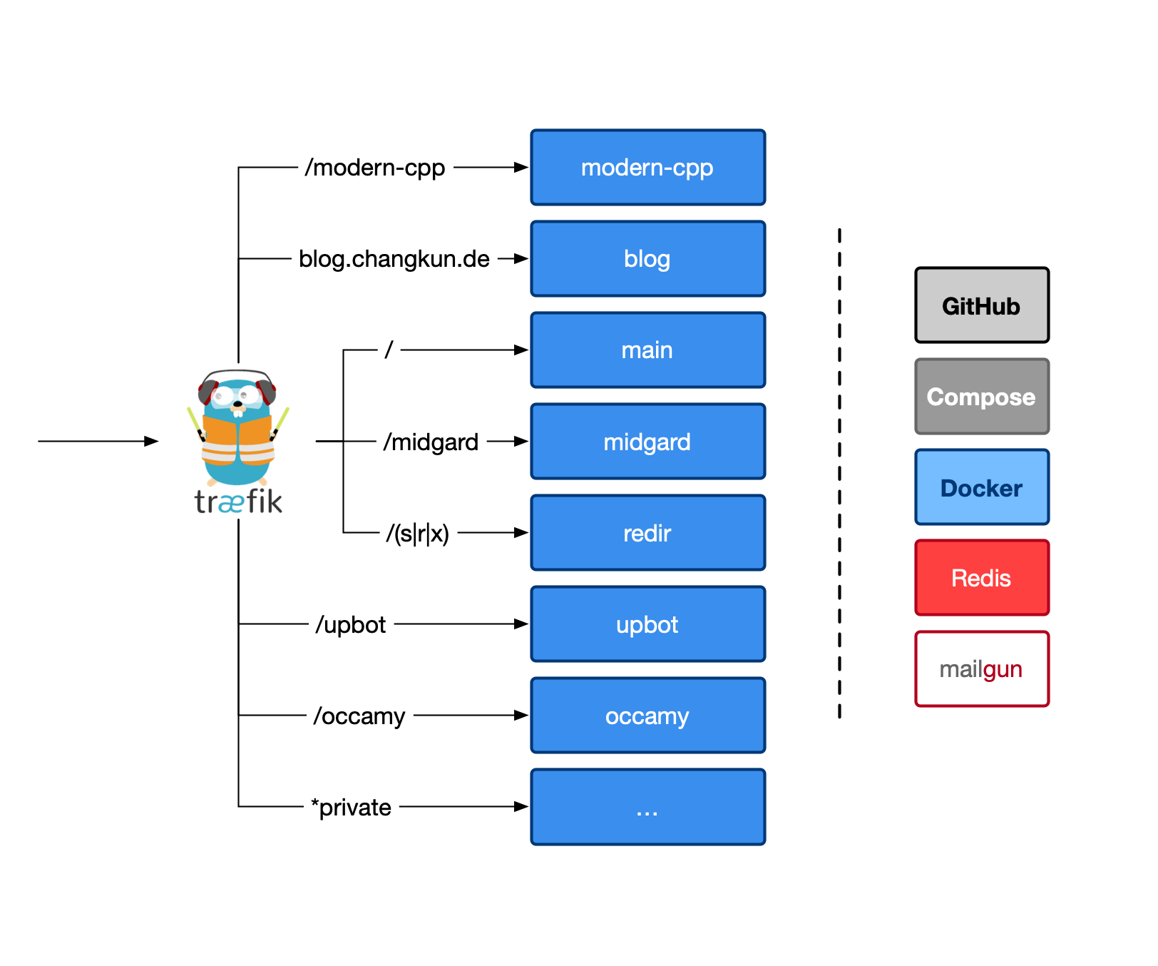 As some of the last items on my 2020 TODO list, I finally spent the first three days of my Christmas holiday completing a full “architecture upgrade” of changkun.de. The previous setup was an organisationally chaotic, dependency-heavy mess of native Nginx + Docker + tmux-served binaries + Jupyter notebooks + hypervisors + crontabs + … relying on C/C++/Python/Node.js/Go/… and countless third-party dependencies. All of that has now been replaced by a pure Go backend guided by the principle: “build in-house wherever possible, avoid dependencies wherever you can, and when you must depend on something, depend on something written in Go”.