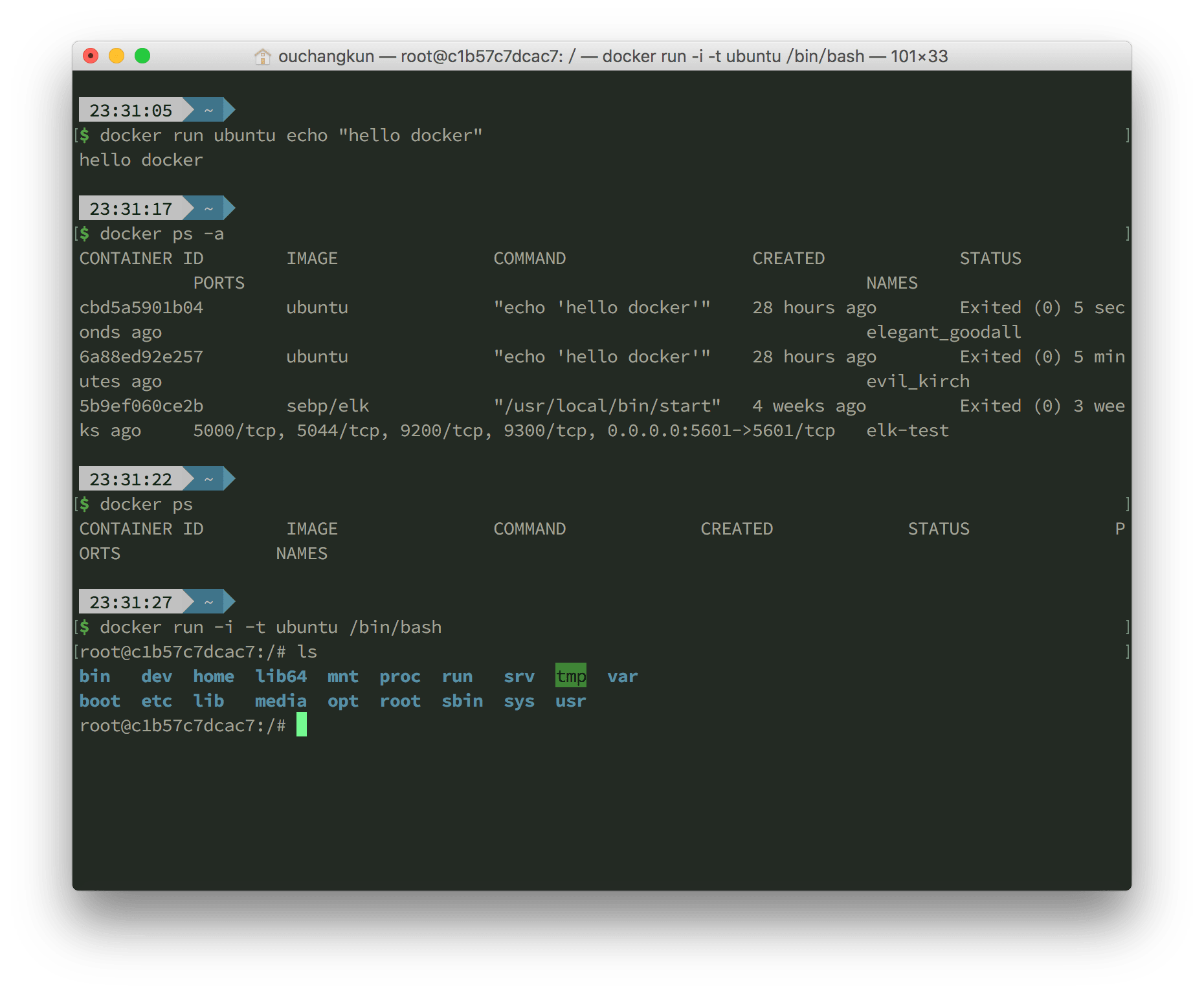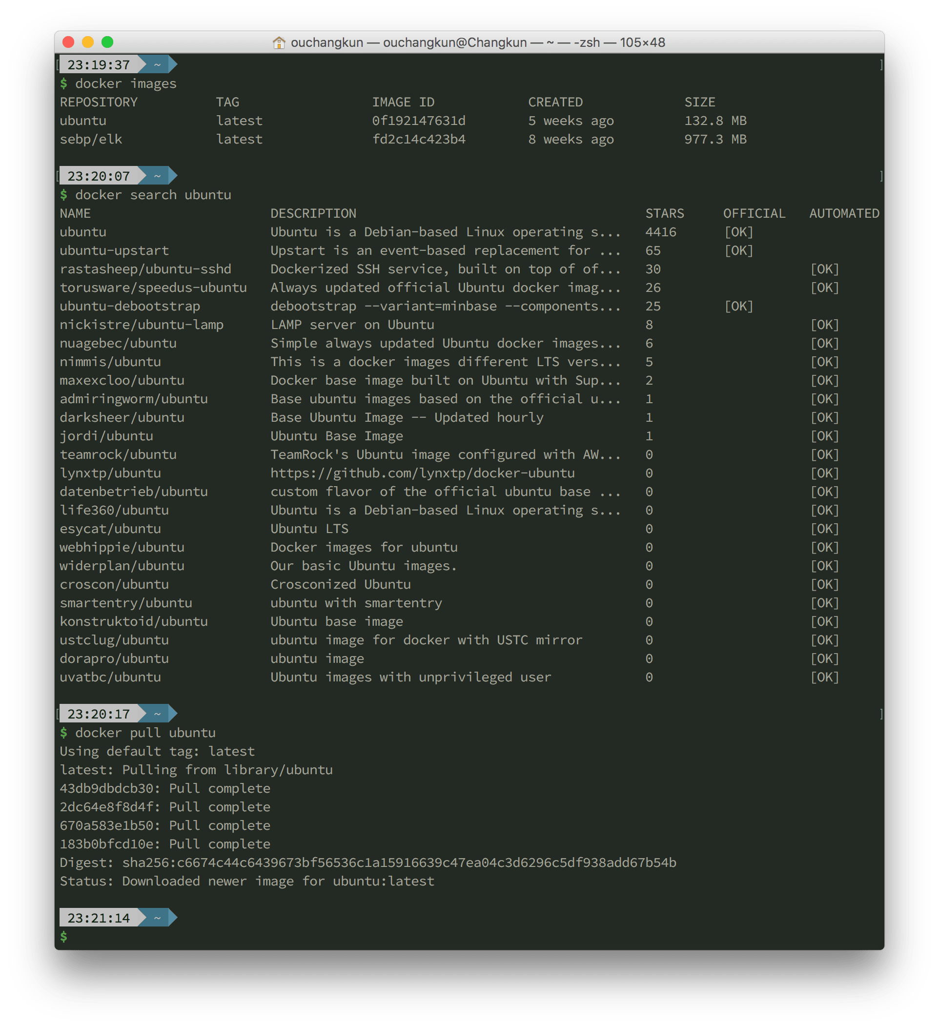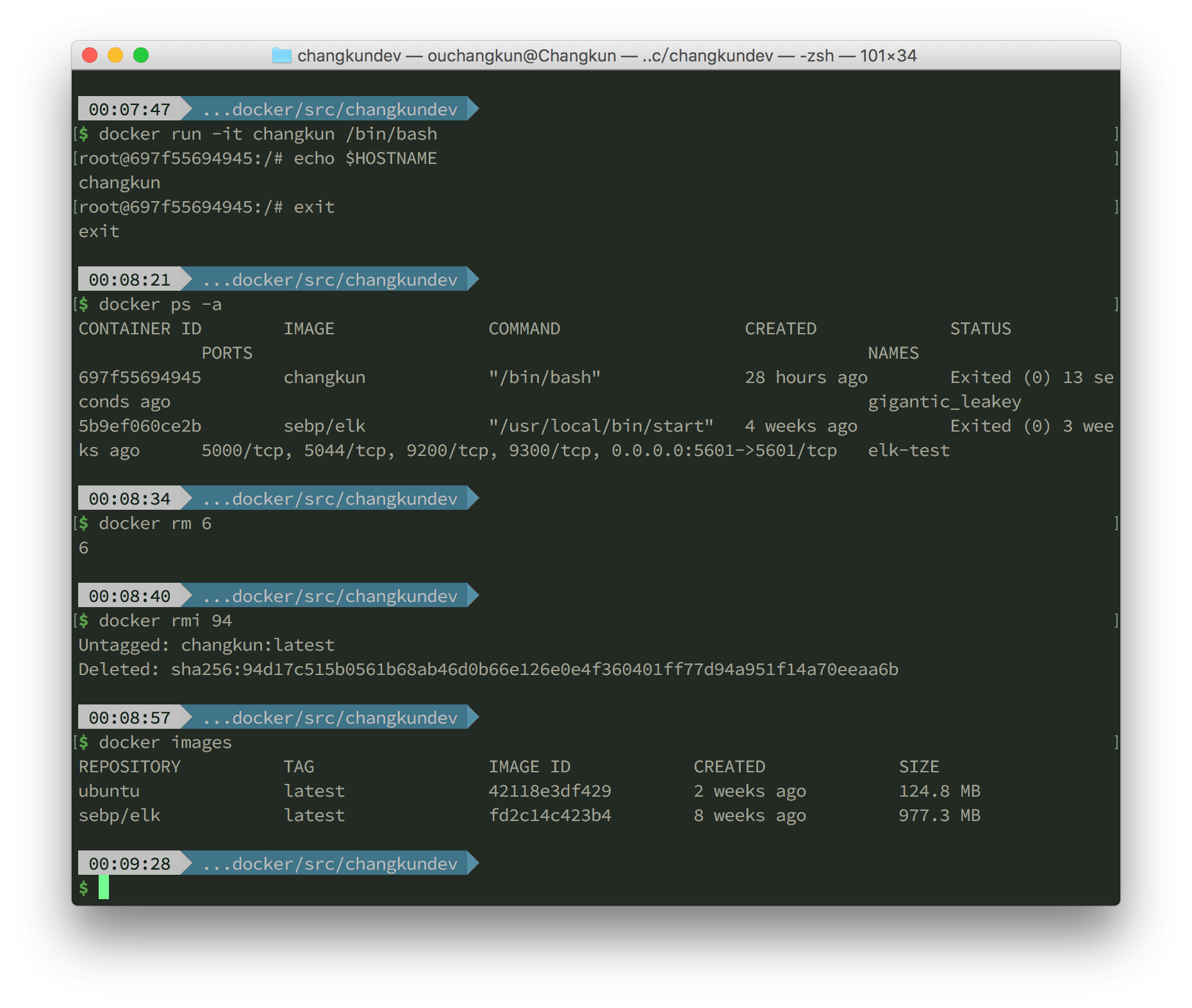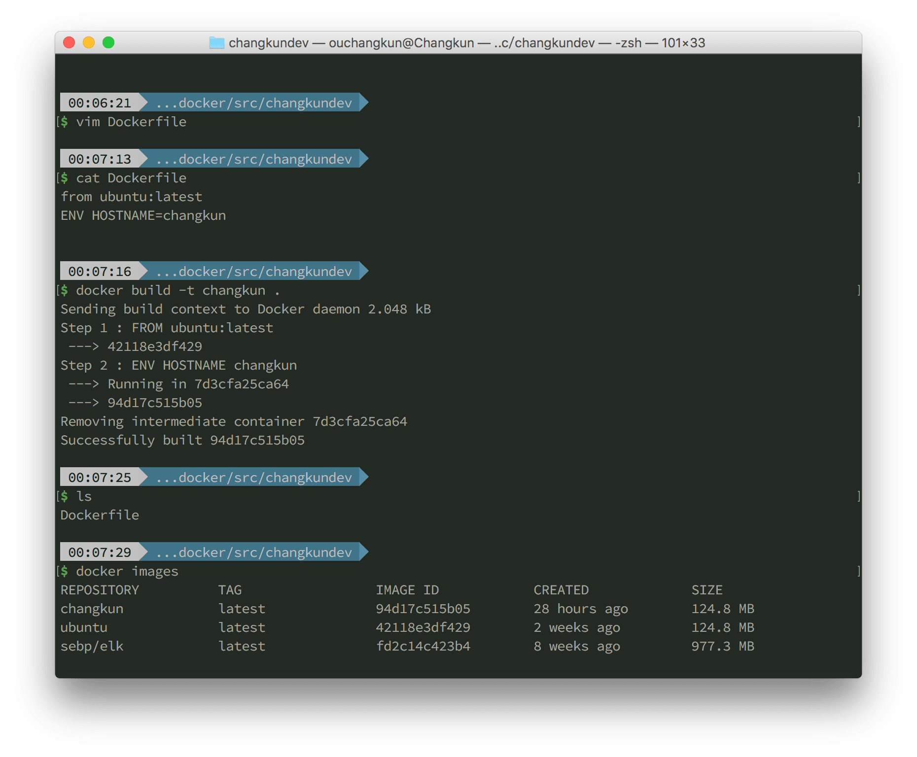 其中 -t changkun 指定了镜像的名字, . 标志从当前目录查找 Dockerfile。