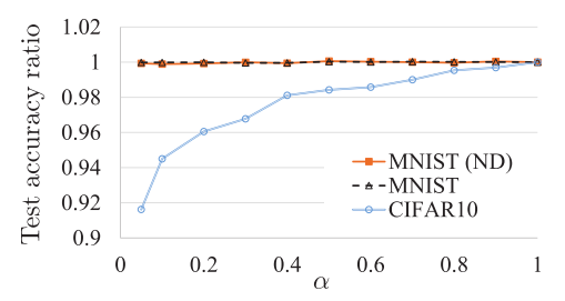 这个实验结果是在说:在只用很小一部分training data 训练出的 activation pattern,依然能够收获不算太差的结果(比如第一个 alpha=0.05,MNIST 依然能够获得不算太差的精度),two-phase training 还是能让网络 work 的,虽然损失了一些精度,但最大的优势更是解决了 z 的独立性问题。