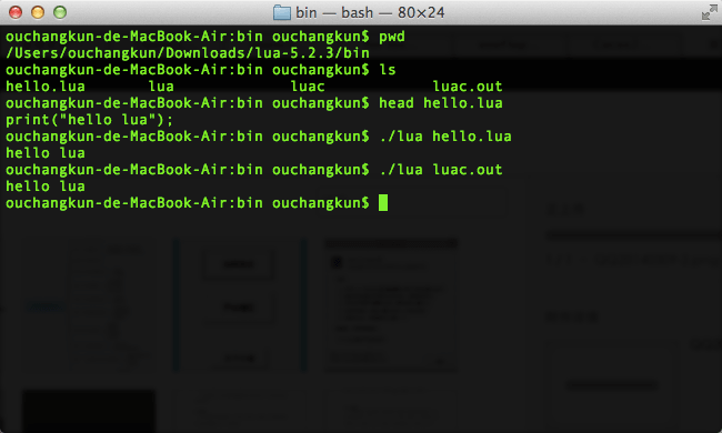我们可以使用luac对lua script进行编译,或者使用lua直接执行lua脚本(可以是源码,也可以是编译后的文件)。如图所示。